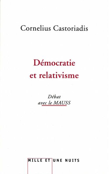 Démocratie et relativisme constitue le témoignage écrit d'un débat public qui se tint en 1994 : les rédacteurs de La Revue du MAUSS [Mouvement anti-utilitariste dans les sciences sociales], notamment Alain Caillé, Serge Latouche et Jacques Dewitte, avaient souhaité débattre avec le philosophe dissident de Socialisme ou barbarie, auteur de la série Les Carrefours du labyrinthe. En ces années qui suivent la fin de l'URSS et « de l'Histoire », les sujets ne manquent pas : Quelle conception de la démocratie ? Qu'est-ce que l'Occident ? Pourquoi la résurgence des intégrismes religieux ? Qu'est-ce que l'universalisme ? Qu'est-ce que le marché ? Quelle est cette forme que prend le capitalisme ? Quels sont les paradoxes du relativisme culturel ? En posant ces questions qui balisent aujourd'hui encore le champ intellectuel français, Cornelius Castoriadis enregistrait et décrivait l'effondrement que connaît l'Occident. Avec la vivacité et la grande clarté de son esprit, il diagnostiquait tous les maux qui se sont aujourd'hui aggravés.