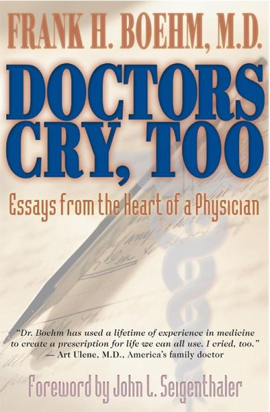 "Dr. Boehm has used a lifetime of experience in medicine to create a prescription for life we can all use. I cried, too."- Art Ulene, M.D., America's family doctor Doctors Cry, Too is a collection of essays from the heart of physician Frank H. Boehm, M.D. This moving and inspirational book deals with issues surrounding doctors, nurses, patients, their loved ones, and the perplexing issues that relate to these individuals. These essays portray a medical profession that is sensitive, emotional, spiritual, and compassionate. They include special moments in the life of Dr. Frank Boehm, such as a son and daughter going off to college, coping with the personal grief of losing loved ones, the birth of a granddaughter, and the healing that comes from joy. The essays also address his point of view on such subjects as strength and courage, faith, happiness, depression, forgiveness, death and dying, friendship, the heartbreak of infertility, parenting, and medical expectations. It is the author's hope that this book will help you understand that doctors are subject to the same stresses and pressures of life as everyone else, and that by gaining insight into the heart of one physician, you will gain insight into the heart of many.