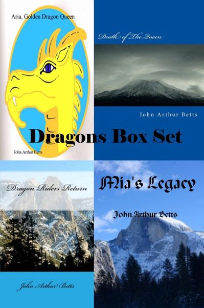This is a value priced box set which includes four complete books, three from the Dragon Queens Series and one stand alone for your pleasure. Aria, Golden Dragon Queen Dragon Queens Series, book 1 A kingdom ruled by Aria, Queen of Dragons is attacked and defeated by Dark Wizards. After one thousand years the Dragons fight back. *** Death of the Queen Dragon Queens Series, book 2 At an Age of just over one hundred thousand years, Aria, Golden Dragon Queen is reaching the end of her physical life. The Dragon magic is already receding, but she has much work to carry out before she dies. The dark wizards will soon discover the weakening Dragon magic and start another war *** Dragon Riders Return Dragon Queens Series, book 3 Two hundred and fifty thousand years after the death of Aria, Golden Dragon Queen, the earth magic finds an unborn child strong enough to carry the full magic of the earth and sets in motion events that will lead to the return of the dragons *** Mia's Legacy When a human colony spacecraft crash lands on a planet ruled by Dragons and populated by mythical creatures, they mistake the creatures rush to assist them as an attack, this mistake leads to years of war until a truce is forged by the Red Dragon, will it last, can they all survive. ***