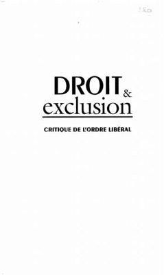 L'argument central que developpe Droit et exclusion : critique de l'ordre liberal, c'est que l'exclusion est liee a une interpretation liberale des principes fondateurs de la societe civile et, surtout, de son droit civil. Il s'agit alors de mettre en lumiere la portee et les limites du cadre juridique qui sert a fonder la societe civile a partir d'etudes portant sur l'exclusion des femmes, sur le role des chartes de droit ou sur la justice sociale. Le livre engage ainsi une critique de fond de l'ordre liberal, de son ideologie et de sa dogmatique, au nom de la defense d'une societe civile plus egalitaire, au nom de la promotion de la justice sociale.