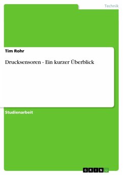 Studienarbeit aus dem Jahr 2008 im Fachbereich Ingenieurwissenschaften - Wirtschaftsingenieurwesen, Note: 1,3, Hochschule für Technik und Wirtschaft Berlin, Sprache: Deutsch, Abstract: Im Rahmen dieser Arbeit wird ein allgemeiner Überblick über das Thema "Sensoren" mit spezieller Sicht auf die Drucksensoren geboten. Die verschiedenen Messverfahren werden jeweils anhand eines kurzen, prägnanten Beispiels vertiefend erläutert; hinzu kommt ein ausführlicheres Anwendungsbeispiel. Darüber hinaus werden die verschiedenen technologischen Prinzipien, auf denen die jeweiligen Druckmessverfahren beruhen ebenso behandelt wie auch die Anforderungen an die Drucksensoren in Abhängigkeit ihres Einsatzortes und den Umgebungsbedingungen.