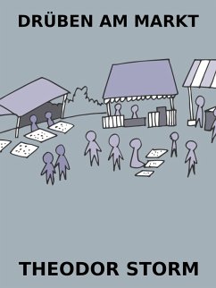 Drüben am Markt ist eine Erzählung von Theodor Storm. Auszug: Schon wieder stand der Herr im blauen Frack an der Wehle, unterhalb des Deiches zu fischen. Vier Angelruten hatte er ausgelegt; die Korke mit den Federposen schwammen auf der blanken Wasserfläche, während die Stöcke in dem üppigen Marschgrase ruhten. Auch der kleine schwarze Hund saß wieder daneben, wie es schien, in die Betrachtung des vor ihm liegenden Netzes versunken, das schon zur Hälfte mit Weißfischen und Aalen gefüllt war; nur zuweilen warf er den Kopf herum und schnappte nach den Schmeißfliegen, die um seine Nase schwärmten. Sein Herr hatte die ausgerauchte Meerschaumpfeife neben sich gelegt und blickte, die Hände auf den Rücken gefaltet, aus seinen kleinen runden Augen gleichgültig vor sich hin; bald auf die schwimmenden Korke, bald über die Wehle nach dem spitzen Turm der nicht gar fernen Stadt. Die Sonne blitzte in den blanken Knöpfen seines Fracks und vor ihm auf dem stillen Wasser; mitunter zog er ein blaugedrucktes Schnupftuch aus der Tasche und trocknete sich damit den Schweiß aus seinen schon ergrauten Haaren. Das Schilf duftete, es war ein heißer Septembernachmittag.