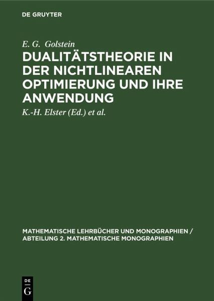 Keine ausführliche Beschreibung für "Dualitätstheorie in der nichtlinearen Optimierung und ihre Anwendung" verfügbar.