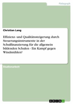 Studienarbeit aus dem Jahr 2007 im Fachbereich Pädagogik - Schulwesen, Bildungs- u. Schulpolitik, Note: 1,3, Europa-Universität Flensburg (ehem. Universität Flensburg) (Institut für Wirtschaft und Politik und seine Didaktik), Veranstaltung: Bildungsfinanzierung, Sprache: Deutsch, Abstract: "Es gibt auf Dauer nur eins, was teurer ist als Bildung: keine Bildung." J.F. Kennedy Das Budget der öffentlichen Hand für Bildung, Forschung und Wissenschaft betrug 2003 für den Bildungsprozess ein Volumen von 122 Mrd. EUR. Dies entspricht 5,6% des BIP Deutschlands. Innerhalb der OECD befindet sich Deutschland damit im unteren Mittelfeld. Allgemein bildende Schulen (staatliche und private Schulen) machten gemeinsam den größten Einzelposten dabei mit 48 Mrd. EUR aus. Soweit man dem Vergleich eines arithmetischen Mittels aus BIP und Bildungsausgaben Glauben schenken mag, und die Sonderrolle Deutschlands durch das duale Berufsausbildungssystem vernachlässigt, kommt man durch einen internationalem Vergleich zu dem Schluss, dass es in der Bildungspolitik- und Finanzierung noch Entwicklungspotentiale für Deutschland gibt (vgl. GRÖZINGER 2005, 44). In fast allen Industrieländern wird das Schulwesen im wesentlichen aus den öffentlichen Haushalten finanziert. Dies gilt auch für Länder mit hohen Privatschulanteil. In vielen Ländern werden private Schulen, dazu gehört auch Deutschland, staatlich unterstützt. In anderen Ländern, wie z.B. Großbritannien und USA, müssen private Schulen sich vollständig selbst finanzieren können und bekommen keine staatlichen Zuschüsse. Mit Blick auf die vergangenen Jahrzehnte ist der Bildungsetat, für die allgemein bildenden Schulen, angestiegen. Diese Mehrinvestition ist aber nicht in Lehrmittel und Ausstattung investiert worden, sondern vorwiegend für die Verbesserung der Schüler - Lehrer Proportion. Mit Blick auf die einzelnen Schultypen ist auffallend, das der Primar- und Sekundarbereich in Deutschland unterfinanziert ist und der Sekundarbereich II klar oberhalb des OECD Durchschnitts liegt (vgl. ebd. 44). Dies zeigt, dass in Deutschland nicht nur im internationalen Vergleich weniger für Bildung ausgegeben wird, sondern auch große Anteile der Mittel als Personalkosten anfallen und Schulzweige unterschiedlich stark finanziell unterstützt werden. Unternehmerisch gesprochen ist die "Firma Schule" mit Abstand der größte Arbeitgeber Deutschlands. Mit 850.000 Angestellten (inklusive Verwaltung) und 9,5 Mio. "Kunden" übertrifft sie alle Großunternehmen wie z.B. Siemens (461.000 Mitarbeiter), Daimler- Chrysler (380.000 Mitarbeiter) und VW (340.000 Mitarbeiter).