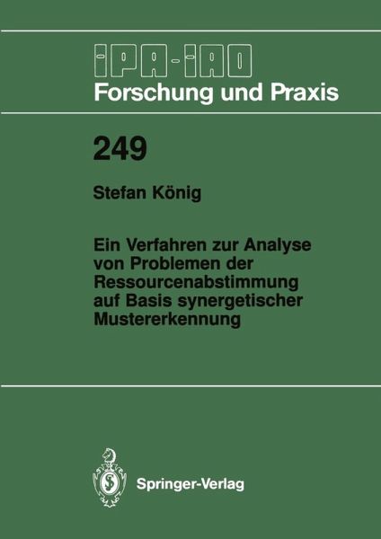 1 Einleitung.- 2 Festlegung des Untersuchungsbereichs.- 2.1 Komplexe Produktionssysteme im turbulenten Umfeld.- 2.2 Abstimmungsplanung der Ressourcen Material, Betriebsmittel und Personal.- 2.3 Analyse von Problemen der Ressourcenabstimmung.- 3 Anforderungen an Ein Verfahren zur Analyse von Problemen der Ressourcenabstimmung.- 3.1 Aufbau der Problemanalyse.- 3.2 Planungsinhalte der Ressourcenabstimmung.- 3.3 Problemklassen der Ressourcenabstimmung.- 3.4 Analysemethodik.- 4 Stand der Technik.- 4.1 Einfache Analyseverfahren.- 4.2 Statistische Analyseverfahren.- 4.3 Wissensbasierte Analyseverfahren.- 5 Synergetische Mustererkennung Als Lösungsansatz zur Analyse von Problemen der Ressourcenabstimmung.- 6 Grundlagen des Verfahrens zur Problemanalyse.- 6.1 Planungsinhalte der Ressourcenabstimmung.- 6.2 Problemklassen der Ressourcenabstimmung.- 6.3 Analysemethodik.- 7 Verfahrensablauf der Problemanalyse.- 7.1 Verfahrensablauf zur Vorbereitung der Problemanalyse.- 7.2 Verfahrensablauf zur Anwendung der Problemanalyse.- 7.3 Gesamtablauf des Verfahrens.- 8 Diskussion von Verfahrensaspekten Hinsichtlich Industrieller Anwendung.- 8.1 Anwendungsbeispiel.- 8.2 Labortest.- 8.3 Praxistest.- 9 Zusammenfassung und Ausblick.- 10 Literaturverzeichnis.