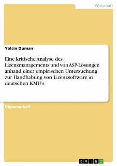 Diplomarbeit aus dem Jahr 2008 im Fachbereich BWL - Unternehmensführung, Management, Organisation, Note: 1,7, Hochschule Ludwigshafen am Rhein, Sprache: Deutsch, Abstract: Kaum eine andere Branche hat die Gesellschaft und die Unternehmenswelt so nachhaltig verändert wie die Softwarebranche. So ist die Softwareunterstützung von inner- sowie zwischenbetrieblichen Geschäftsprozessen heute gleicher-maßen eine Selbstverständlichkeit wie das "Googeln" nach Informationen oder die Nutzung von Navigationsgeräten. In Folge dessen ist es auch wenig überraschend, dass laut einer Studie von Bundesverband Informationswirtschaft, Telekommunikation und neue Medien (Bitkom) die Softwarebranche in Deutschland im Jahr 2008 voraussichtlich um 5,7 Prozent wächst und somit 17,9 Mrd. Euro Umsatz verzeichnen wird.1 Die Marktforschungs- und Beratungsfirma Gartner erwartet für das Jahr 2008 sogar mehr als 10 Prozent Wachstum im Softwaresegment.2 Aus diesem Grund zählt der Softwaremarkt zu den bedeutendsten Wachstumsmärkten in Deutschland. Im Vergleich zum Softwaremarkt macht der Application Service Providing (ASP)-Markt gemäß einer Studie von Experton Group in Deutschland nur ein Volumen von 345 Mio. Euro aus. Jedoch wird das Segment voraussichtlich bis zum Jahr 2010 mit Steigerungsraten von 30 Prozent auf ein Volumen von 577 Mio. Euro anwach-sen.3 Auf Grund dessen wird ersichtlich, welche Bedeutung der ASP Markt in näherer Zukunft haben wird.