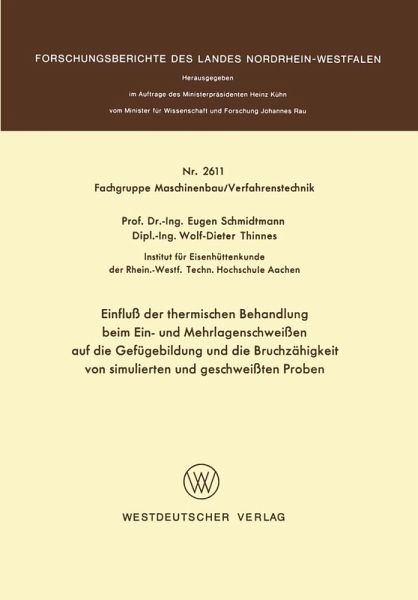 Einfluß der thermischen Behandlung beim Ein- und Mehrlagenschweißen auf die Gefügebildung und die Bruchzähigkeit von simulierten und geschweißten Proben (eBook, PDF)