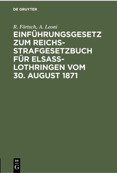 Keine ausführliche Beschreibung für "Einführungsgesetz zum Reichs-Strafgesetzbuch für Elsass-Lothringen vom 30. August 1871" verfügbar.