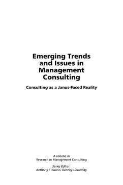 The ninth volume in the Research in Management Consulting (RMC) series-much like the volumes that preceded it-underscores that management consulting is a multifaceted field with a truly eclectic nature. Management consultants range from sole practitioners and those working in small boutique firms to members of global consultancies that literally span the world. Their interventions can consist of relatively simple, commonly available services focused on mid- to lower level organizational members, to those that are far more esoteric in nature, providing vital assistance and direction to key players at the upper echelons of the corporate hierarchy. As consultants we can have individuals, groups and work units, or organizations as our "client," and engagements can be dominated by junior-level specialists or guided by senior-level gurus and advisors. The volume contains 11 chapters that continue the RMC series' commitment to enhancing our understanding of and insight into management consulting and the consulting process from a cross-cultural, global perspective. The book is divided into three sections that explore emerging issues and challenges in the management consulting industry, trends and techniques in management consulting interventions, and reflections on consulting and the consulting process. This volume, which captures the dual nature-possibilities and challenges - associated with management consulting, adds to the Janus-faced portrayal of the field. Drawing on the interplay between practice and scholarship, the volume adds to the series goal of gaining a fuller understanding of management consulting theory in practice and practice in context in a quest for actionable knowledge about consultants, consultancies and the consulting process.