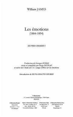 La theorie de Williams James (1842-1910) sur l'emotion est une des plus curieuses qui ait ete formulee en philosophie et en psychologie. Pour James, l'emotion est l'effet, et non la cause, de son expression organique. Cette theorie, n'est pourtant pas aussi paradoxale qu'elle le semble. Prenons l'exemple de l'emotion de la peur : on ne tremble pas parce qu'on a peur mais c'est parce qu'on tremble que l'on a peur. L'ouvrage rassemble les differents articles de James sur l'emotion.