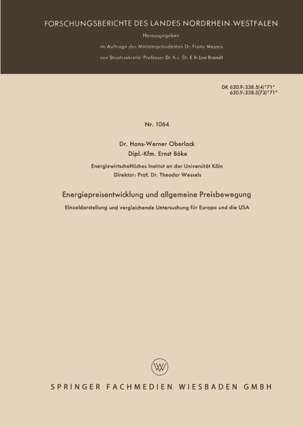 Gliederung.- Aufgabenstellung und Vorbemerkungen zur Terminologie und Untersuchungsmethode.- A Grundlagen der Energiepreisbildung und der Messung der allgemeinen Preisentwicklung.- B Energiepreisentwicklung und allgemeine Preisbewegung in Europa und in den USA.- C Ländervergleich und Auswertung.- Literaturverzeichn.