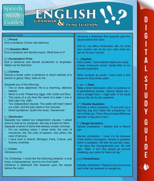 English grammar and punctuation are how we make ourselves understood in a clearer way. Using proper grammar makes sure that everyone reading a text or listening to you speak understands your meaning. Punctuation helps us distinguish between parts of a sentence, such as a side thought in commas, and tells us when one thought ends and another begins. Without punctuation, how would we know when a question was a question? Grammar and punctuation work together to make everything clearly organized and easily processed by others. Without standard grammar and punctuation, it might feel as if we were all speaking different languages.…mehr
