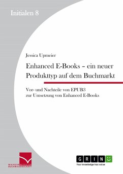 Bachelorarbeit aus dem Jahr 2012 im Fachbereich Buchwissenschaft, Johannes Gutenberg-Universität Mainz, Sprache: Deutsch, Abstract: Mit den neusten Entwicklungen der Hardware bei eReadern, Tablets und Smartphones stellt sich die Frage der technischen Repräsentation des Inhaltes von eBooks, vor allem beim neuen Produkttyp des Enhanced eBook. Mit Epub 3 sollen sich für Medienproduzenten und Verlage neue Möglichkeiten eröffnen, Buchprodukte als Enhanced eBook multimedial anzureichern. Diese Arbeit beschäftigt sich demnach mit dem Thema, wie sich diese Technologie tatsächlich für Enhanced eBooks auf Devices wie eReadern, Tablets und Smartphones umsetzen lässt. Welche Schnittstellen der technischen Komponenten dabei berührt werden und wie sich die derzeitige Marktlage, hinsichtlich der Formatkompatibilität bezüglich eBooks, zu einem Anbieter wie Amazon präsentiert und damit eine zukünftige Weichenstellung pro Epub 3 für Verlage beeinflusst.