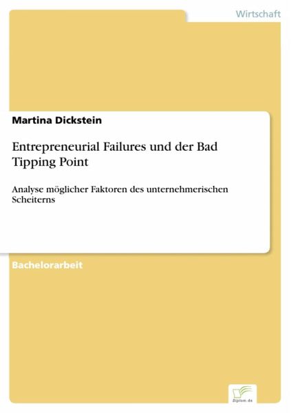 Die Problemfelder und Ursachen für unternehmerischen Misserfolg sind so komplex und vielfältig, dass der Prozess des Scheiterns oftmals noch intransparent ist und einer direkten Untersuchung bedarf. Der wirtschaftliche Erfolg stellt sich bei Unternehmern nicht immer ein und wird oft von Rückschlägen vereitelt. Unternehmerische Entscheidungen ohne offensichtlich große strategische Auswirkung können sich im Nachhinein als fataler, existenzbedrohender Fehler für ein Unternehmen entpuppen. Das Scheitern ist ein Thema, das sowohl in der Gesellschaft als auch in der Literatur thematisiert wird, aber wie kann so ein Pfad des Scheiterns ablaufen? Welche Faktoren reihen sich in der Prozesskette aneinander und wie kommt es dann zum Misserfolg? Das Thema dieser Bachelorarbeit ist darauf beschränkt zu untersuchen, wie der Prozess eines entrepreneurial failure ablaufen kann. Die unterschiedlichen Faktoren, die zu einem Misserfolg führen können, werden analysiert und Erkenntnisse darüber gewonnen, ob ein einzelner Faktor als Auslöser für das Scheitern im Unternehmertum als so genannter Bad Tipping Point identifiziert werden kann.