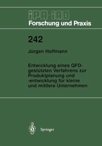 1 Einleitung.- 1.1 Problemstellung.- 1.2 Zielsetzung.- 1.3 Vorgehensweise.- 2 Begriffliche Abgrenzungen.- 2.1 Der Begriff der Produktplanung und -entwicklung.- 2.2 Merkmale kleiner und mittlerer Unternehmen.- 3 Stand der Technik bei der QFD-Methode für die Produktplanung und -entwicklung.- 3.1 Quality Function Deployment (QFD).- 3.2 QFD-integrierbare Methoden.- 3.3 Integrierte Methodenmodelle und deren Defizite.- 4 Herleitung der Anforderungen an ein QFD-gestütztes Verfahren.- 4.1 Entwicklungsbedarf für ein QFD-gestütztes Verfahren.- 4.2 Anforderungskatalog für ein QFD-gestütztes Verfahren.- 4.3 Unterstützende Werkzeuge.- 5 Entwicklung eines QFD-gestützten Verfahren zur Produktplanung und -entwicklung.- 5.1 Ansätze für die Grundstruktur.- 5.2 Grundstruktur des QFD-gestützten Verfahrens.- 5.3 Aufbau des QFD-gestützten Verfahrens.- 5.4 Arbeitsschritte und Elemente des QFD-gestützten Verfahrens.- 5.5 Systematische Vorgehensweise.- 6 Einsatz des QFD-gestützten Verfahrens in der Praxis.- 6.1 Integration im Unternehmen.- 6.2 Hinweise für eine erfolgreiche, praktische Anwendung.- 6.3 Fallbeispiel.- 6.4 Nutzen und Anwendungsbereich in der Praxis.- 7 Zusammenfassung.- 8 Literaturverzeichnis.- 9 Anhang.