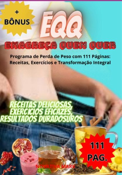 Você está pronto para transformar sua vida e conquistar uma saúde vibrante? Apresentamos o ebook EQQ Emagrece Quem Quer , um programa abrangente de perda de peso projetado para aqueles que buscam uma transformação completa. **O que Você Encontrará em EQQ Emagrece Quem Quer :** 1. **Receitas de Suco Detox e Antiansiedade:** Descubra deliciosas receitas que não apenas nutrem seu corpo, mas também proporcionam benefícios emocionais, promovendo um equilíbrio interno essencial para o sucesso a longo prazo. 2. **Sopas Antiflamatórias e Saladas Revigorantes:** Explore opções culinárias que não apenas satisfazem seu paladar, mas também impulsionam seu sistema imunológico e promovem uma digestão saudável. 3. **Chás Terapêuticos e Estratégias de Bem-Estar Emocional:** Mergulhe em práticas que cuidam de sua mente e alma, complementando a abordagem física do programa EQQ. 4. **Série de 10 Exercícios Eficazes:** Deixe-se inspirar por uma série de exercícios cuidadosamente projetados, adaptáveis a todos os níveis de aptidão, com orientações claras para garantir a execução correta. **Por que Escolher EQQ Emagrece Quem Quer :** - **Abordagem Holística:** Este programa vai além da perda de peso superficial, abraçando a importância da saúde mental, emocional e física. - **Resultados Sustentáveis:** Não se trata apenas de perder peso, mas de cultivar hábitos duradouros que promovem uma vida saudável e equilibrada. - **Suporte da Comunidade:** Junte-se a outros participantes no exclusivo espaço EQQ, compartilhando sucessos, desafios e inspirações para uma jornada coletiva de transformação. - **Garantia de Satisfação:** Estamos tão confiantes nos benefícios do programa EQQ que oferecemos uma garantia de 30 dias. Sua transformação é nossa prioridade. O Que Você Receberá: Guia Detalhado de Receitas: Suco Detox Matinal para Impulsionar seu Dia. Sucos Antiansiedade para Equilíbrio Emocional. Sopas que Combatem Inflamações e Nutrem seu Corpo. Saladas Criativas para Refeições Leves e Nutritivas. Chás Terapêuticos para Relaxamento e Bem-Estar. Série de Exercícios Eficazes: 10 Exercícios Guiados para Tonificar e Fortalecer. Vídeos Demonstrativos para Garantir a Execução Correta. Inclui Rotinas para Todos os Níveis de Aptidão. Guia Completo de Transformação: Abordagem Única do EQQ para Perda de Peso com Saúde. Estratégias para Bem-Estar Emocional e Mental. Dicas Práticas para Integração na Vida Diária.