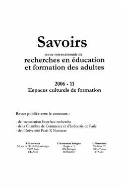 Musees, bibliotheques, espaces publics numeriques et autres expositions fournissent l'objet de ce numero. Espaces culturels : espaces caches, ou les "e;visiteurs"e; n'ont pas forcement conscience de se trouver en situation d'education et ou les professionnels responsables connaissent souvent mal les particularites de la formation des adultes. Une rflexion thorique sur ces espaces et sur l'existence d'une vritable ducation, notamment musale.