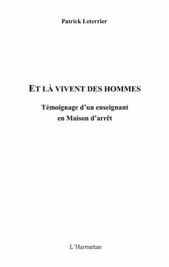 Exercer en prison quand on est professeur des ecoles, c'est assurer une mission tres particuliere de l'Education nationale, au-dela de la lutte contre l'illettrisme qui est cependant prioritaire. Il y a d'abord le choc de l'immersion dans l'univers carceral, puis la decouverte des regles qui regissent cette microsociete. Par le biais d'anecdotes, de situations vecues, c'est une experience professionnelle et personnelle de neuf annees qui se raconte dans ce livre, temoignage de la realite du monde carceral.