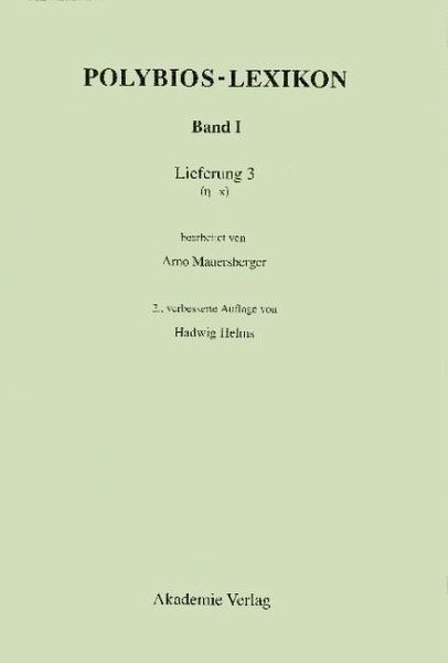 Das seit 1949 von der Berliner Akademie der Wissenschaften betreute Polybios-Lexikon erschließt in Form eines Bedeutungswörterbuchs umfassend den Wortschatz der Historien des Polybios (um 200-120 v. Chr.), der wichtigsten Quelle für die Geschichte der hellenistischen Welt im 3. und 2. vorchristlichen Jahrhundert. In detaillierter Analyse des Materials führt es unter semantisch, grammatisch oder phraseologisch begründeten Subrubriken der einzelnen Stichwortartikel nach Angabe der Frequenzzahl alle einschlägigen Belege auf; es gibt Auskünfte über die syntaktische Verwendung eines Wortes, Hinweise auf Synonyme und Antonyme, morphologische Angaben zu jedem Verb und bei Bedarf auch Sachinformationen. Weitere lieferbare Bände: Band I, Lieferung 1 (alpha-gamma/Korrektur ins Griechische!!!), ISBN 3-05-003499-8 Band I, Lieferung 2 (delta-zeta/Korrektur ins Griechische!!!), ISBN 3-05-004012-2 Band I, Lieferung 3 (eta-kappa/Korrektur ins Griechische!!!), ISBN 3-05-004021-1 Band I, Lieferung 4 (lambda-omikron/Korrektur ins Griechische!!!), ISBN 3-05-004022-X Band II, Lieferung 1 (Korrektur ins Griechische!!!), ISBN 3-05-003154-9 Band II, Lieferung 2 (Korrektur ins Griechische!!!), ISBN 3-05-004023-8 Band III, Lieferung 1 (Korrektur ins Griechische!!!), ISBN 3-05-003437-8 Band III, Lieferung 2 (Korrektur ins Griechische!!!), ISBN 3-05-004024-6 Das Lexikon liegt vollständig vor.