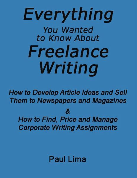 Review: Paul Lima's Everything You Wanted To Know About Freelance Writing really delivers! The material is useful--no, make that critical--for anyone who wants to survive and prosper in this business. Lima's section on generating article ideas, alone, is worth the price of the book. Highly recommended. - Tony Levelle, freelance writer (LinkedIn)