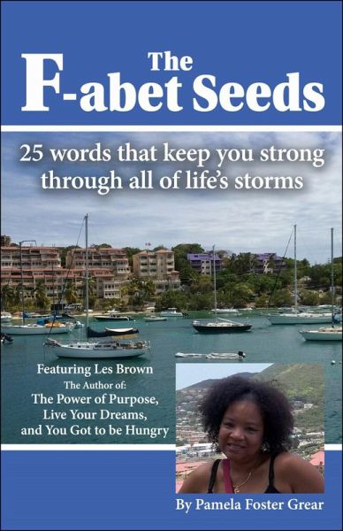 The F-abet Seeds - 25 Words that keep you strong through all of the life storms is a motivational book by Pam Grear, a Columbus, Ohio author and motivational speaker. The word abets means to assist, lend a hand to or help. Each of the 15 words presented here begins with the letter "f". Each word gives assistance to our daily living for positive thinking and affirmations. Pam gives a thought-provoking concept to each word that is truly fitting for any situation.The "F-words" are: First, Free Yourself, Faith Focus, Firm, Fight, Fresh, Finish, Favor Freedom, Fulfillment, Finance, Future, Fruitful, Fear, Failure, Fabulous Forgiveness, Friend, Follow-up, Fret, Flourish, Flowing, Foster.In the comments by Les Brown, Les gives a good description of the book: "F-abet Seeds was written to give a sense of protection, calm and inner strength in the midst of painful storms we invariably encounter just living life. Pamela Grear the author, entrepreneur and motivational speaker takes us by the hand and leads us down a path where F-abet Seeds are used as tools to lay a foundation and building blocks to withstand whatever life throws in our direction.Pam dedicates the book "…to all the people who have reached for happiness and could not find it. It is my desire that through the words God has given me, I may be able to bless you."