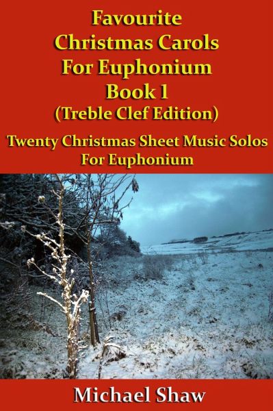 Twenty Christmas Sheet Music Solos For Euphonium. The Euphonium parts in this book are written in treble clef, there is also a bass clef version of this book for players who prefer to read bass clef, you can find this on my author page. This book contains twenty favourite Christmas carol sheet music arrangements for solo Euphonium. Skill Level: Grade1 to Grade 3. Contents: 1. Auld Lang Syne 2. Christians Awake Salute The Happy Morn 3. O Come All Ye Faithful 4. Coventry Carol 5. The First Noel 6. Gather Around The Christmas Tree 7. God Rest Ye, Merry Gentlemen 8. Good Christian Men Rejoice 9. The Holly And The Ivy 10. In The Bleak Midwinter 11. Joy To The World 12. O Come O Come Emmanuel 13. O Little Town Of Bethlehem 14. Once In Royal David's City 15. While Shepherds Watched Their Flocks 16. The Huron Carol 17. The Wexford Carol 18. Unto Us A Boy Is Born 19. What Child Is This? 20. We Wish You A Merry Christmas Note Range I have tried to keep the note range for each instrument in the Favourite Christmas Carols Book 1 series as easy as possible and within the grade 1 to grade 3 level. If, on the rare occasion, you find a note too high or low, you can substitute that note with a note one octave higher or lower as needed. Ensemble Playing The Favourite Christmas Carols Book 1 series is currently available for 12 band and orchestral instruments, which means you can play in unison with two or more instruments. All arrangements are the same and each instrument will play the melody line. Music for each instrument is written in the appropriate key so as to match the ensemble. To get a book for a brass or woodwind instrument other than your own, choose from the Favourite Christmas Carols Book 1 series. You can view these books on my author page.