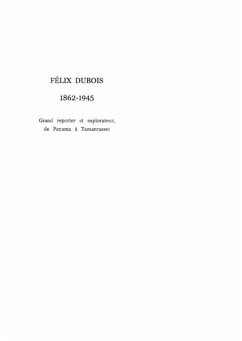 Felix Dubois (1862-1945) est un des pionniers du grand reportage francais moderne. Au journalisme proprement dit, il associe l'exploration, la preparation aux grandes missions d'expansion coloniale, la publication de livres completant les articles du Figaro ou de L'Illustration. Specialiste de l'Afrique occidentale et du Sahara central, il est aussi le premier a introduire l'automobile au Soudan francais, en 1898, dans l'espoir de faire un jour disparaitre l'odieux et dispendieux portage.
