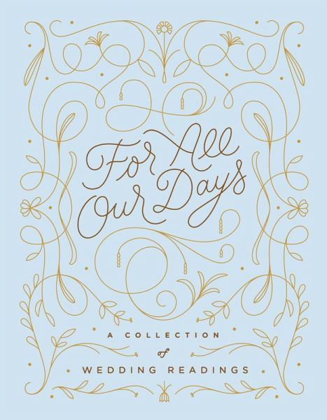 For All Our Days is a sweeping collection of 50 poems and musings to read at a wedding ceremony. Readings range from Shakespearean sonnets and historical love letters to excerpts from classic novels and children's books-and even stand-up comedy routines. Covering a wide range of speech themes and styles, this book ensures there is something for every couple. • A must-have for any couple planning their wedding • Organized into secular and spiritual sections, with religious texts from five major faiths • A sweet reminder of what marriage is all about Engaged couples will love exploring For All Our Days before the big day. This elegant collection of readings is also wonderful for wedding officiants and planners alike. You'll love this book if you love books like The Knot Guide to Wedding Vows and Traditions: Readings, Rituals, Music, Dances, and Toasts by Carley Roney; The Wedding Ceremony Planner: The Essential Guide to the Most Important Part of Your Wedding Day by Judith Johnson; and A Wedding Ceremony To Remember: Perfect Words For The Perfect Wedding by Marty Younkin.