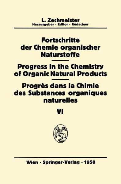 Some Biochemical and Nutritional Aspects in Fat Chemistry.- I. Introduction.- II. Nutritional Evaluation of Fats in General.- III. Comparison of the Nutritional Value of Animal and Vegetable Fats.- IV. Conclusions.- References.- Odeurs et parfums des animaux.- Rôle de l'odeur dans le regne animal.- Drogues animales utilisées en parfumerie.- I. Produits d'excrétion des glandes sébacées.- II. Concrétions intestinales.- III. Substances odorantes de l'urine de Vertébrés.- IV. Fèces.- Conclusions.- Bibliographie.- Vorkommen und biochemisches Verhalten der Chinone.- Wien.- I. Natürlich vorkommende Chinone.- II. Biologische Wirkungen der Chinone.- Schlußbemerkung.- Cactus Alkaloids and Some Related Compounds.- I. Introduction.- II. Historical.- III. Occurrence of Alkaloids in Cacti.- IV. Location of the Alkaloids in Tissues of the Cacti.- V. Extraction and Isolation of Cactus Alkaloids.- VI. The Chemistry of the Cactus Alkaloids and Some Related Natural Bases.- VII. Biogenesis of the Cactus Alkaloids and Their Relationship to Other Natural Products.- VIII. Pharmacological Effects of Cactus Alkaloids and Some Related, Naturally Occurring Bases.- References.- Plant Proteins.- I. Introduction.- II. Proteins of Cereal Seeds.- III. Proteins of Seeds of Dicotyledenous Plants.- IV. The Leaf Proteins.- V. Proteins of Tissues Other than Leaves.- VI. Conclusion.- References.- Progrès récents en spectrochimie de fluorescence des produits biologiques.- I. Avant-propos.- II. Hydrocarbones (glucides) et glucosides.- III. Stérols et Stéroïdes.- IV. Protéines (protides) et aminoacides.- V. Pyrimidines, purines et ptérines.- VI. Thiamine (aneurine), thiochrome et thiazol.- VII. Adrénaline et adrénochrome.- VIII. Alcaloïdes.- IX. Polyphénols.- X. Dérivés del'indol.- XI. Acide nicotinique et nicotylamide.- XII. Uroérythrine (uroroséine).- XIII. Chlorophylles.- XIV. Polyhydroxyanthraquinones et composés similaires.- XV. Lampyrine.- XVI. Carotène, phytofluène et vitamine A.- XVII. Pénicilline et streptomycine.- Appendice: La topographie spectrale dans l'excitation des fluorescences (Spectrofluorescence).- Bibliographie.- Namenverzeichnis. Index of Names. Index des Auteurs.- Sachverzeichnis. Index of Subjects. Index des Matières.