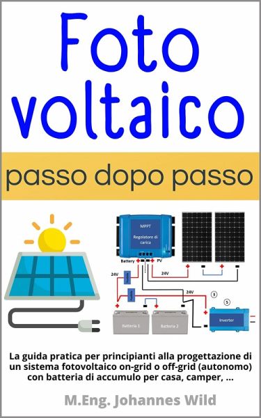 Stai cercando un'introduzione semplice e comprensibile alle basi del fotovoltaico per principianti? Oppure vuoi semplicemente diventare indipendente dalla rete elettrica e dai prezzi dell'elettricità? Sei interessato a progettare e installare un impianto fotovoltaico fai-da-te per produrre energia elettrica in modo autosufficiente? Ti piacerebbe imparare tutto questo e molto altro da un professionista (un ingegnere)? Allora questo libro è la scelta giusta per te, sia che tu stia cercando un libro sulla progettazione di un impianto fotovoltaico autonomo (off-grid), o di un impianto connesso alla rete (on-grid), sia che tu sia interessato a combinare il fotovoltaico con l'accumulo di batterie! Anche se vuoi avere solo una visione d'insieme, cioè se sei interessato all'argomento a scopo puramente informativo, questo libro è adatto. Perché in questo libro troverai tutti questi argomenti facilmente spiegati! In qualità di ingegnere (M.Eng.), in questo libro ti spiego, passo dopo passo e in modo dettagliato, come puoi progettare e installare in modo semplice e veloce un impianto fotovoltaico o un impianto solare, sia per immettere energia elettrica in rete che per il tuo consumo personale per la tua casa, la tua casetta da giardino, la tua Tiny House, il tuo camper, il tuo garage, la tua officina, la tua auto, ... In questo libro distinguiamo tra sistemi solari off-grid e on-grid. Con l'aiuto di due esempi pratici passo-passo (impianto fotovoltaico per la Tiny House e impianto fotovoltaico per la tua casa), non solo imparerai la teoria di questo libro, ma anche come progettare, costruire e installare un impianto solare o un impianto fotovoltaico da solo. Dai un'occhiata al libro e ordina la tua copia!