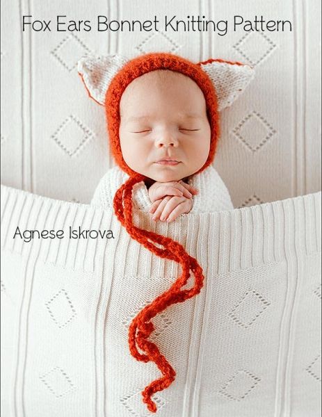 Make the cutest fox ears baby bonnet! The pattern comes in sizes from newborn to 24 months. There are: newborn, 0-3 months, 3-6 months, 6-12 months and 12-24 months sizes included. You will need: DK yarn (up to 70 grams for the largest size in main color and up to 10 grams in contrasting color for the ears), knitting needles to obtain the gauge (this pattern's gauge is 21 sts in 4in/10cm in stockinette stitch), darning needle to weave in the yarn ends and to sew the back of the bonnet and to sew the ears, crochet hook in the same mm size as the knitting needles (if you are making crochet ties). The bonnet and the ears are knit flat.