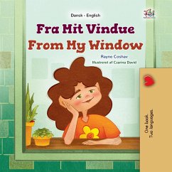 Danish English Bilingual children's book. Perfect for kids learning English or Danish as their second language. While staying sick at home, a young girl discovers magic and stories in the simple scenes outside her window. From unexpected laughter to dances in the rain, each moment sparks her imagination and curiosity, showing how everyday moments can be full of wonder. Mens en ung pige ligger syg derhjemme, opdager hun magi og historier i de enkle scener uden for sit vindue. Fra uventet latter til dans i regnen - hvert øjeblik sætter gang i hendes fantasi og nysgerrighed og viser, hvordan hverdagens øjeblikke kan være fulde af forundring.
