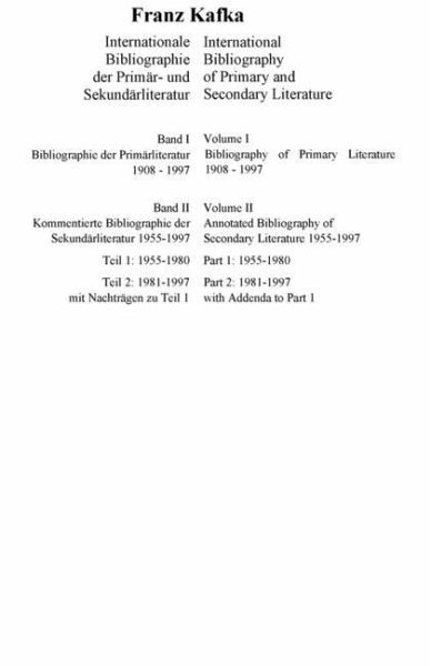 Die vorliegende Bibliographie ist als erste ausschließlich Kafkas Werken und deren Übersetzungen gewidmet. Sie wurde in den USA zusammengestellt und soll dem Benutzer rasche Information über den gegenwärtigen Stand der Dinge geben. Mit dem Erscheinen der kritischen Werkausgabe im Laufe der Achtzigerjahre wird sich die Situation, besonders was Übersetzungen anbelangt, wohl sehr verändern. Die Bibliographie entstand aus der Erwägung heraus, daß bisher noch keine Bemühung darauf gerichtet war, in übersichtlicher Form Kafkas Werke und ihre Übersetzungen in andere Sprachen in einem Band zu vereinen. Es wurde möglichst vollständige Verzeichnung angestrebt, einschließlich der verschiedenen Auflagen und Übersetzungen. Es war zu erwarten, daß Kafkas Werke in die wichtigsten Weltsprachen übersetzt wurden. Das Erstaunliche ist aber, wie weit Kafka in Sprachbereiche eingedrungen ist, die keine globale Bedeutung haben. Gleichzeitig mußte man aber auch feststellen, daß es, genau genommen, eigentlich keine englische Gesamtausgabe von Kafkas Werken gibt.