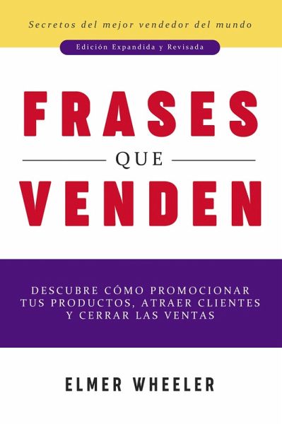 Este clásico y exitoso libro de marketing y ventas del legendario Elmer Wheeler (alguna vez considerado el mejor vendedor del mundo) fue publicado originalmente en 1937. En su momento superó en ventas a todos los demás libros relacionados y sigue siendo muy buscado hasta el día de hoy. Este atemporal libro de ventas está repleto de consejos simples pero altamente efectivos para obtener resultados que aún funcionan mágicamente en nuestros días. Esta edición viene enriquecida con acotaciones del Profesor Jaime Vicens Carrió de la Real Academia de Ciencias Económicas y Financieras de España. Considerado uno de los mejores libros de marketing de todos los tiempos, con influencia probada en la publicidad y redacción de anuncios publicitarios, este libro de ventas muestra las frases reales que se experimentaron para hacer que la gente compre, para vender millones de productos, para triplicar las ventas de calzado, para incrementar ventas de aspiradoras, para vender miles de galones de combustible y los resultados que se obtuvieron. El propósito que Wheeler persigue con esta obra es el de contribuir a que los vendedores puedan enriquecer su vocabulario profesional con aquellas palabras que, dotadas de una poderosa fuerza persuasiva, les permitan dominar francamente cualquier situación con que se enfrenten, por difícil que sea. Descubrirá: . Cómo el presidente de la Compañía Bost Tooth Paste logró vender su dentífrico en droguerías y perfumerías. . Cómo los vendedores de J. C. Penney lograron vender artículos de mejor calidad y en mayor cantidad a cada comprador con tan sólo pronunciar una frase oportuna en el momento oportuno. . Cómo un hombre al que le costó cincuenta años hallar una «frase contrastada de venta» con la necesaria fuerza para vencer los reparos típicos del comprador pudo finalmente encontrar once palabras que vendieron centenares de libras de tabaco para pipa. . Cómo tomar la "temperatura" del cliente . Estrategias probadas por empresas y compañías hoy exitosas Decenas de historias reales de vendedores que pusieron en práctica estas estrategias y sus resultados y ¡mucho más! También le muestra cómo crear sus propias frases poderosas, basadas en el conocimiento adquirido por ejemplos de la vida real. Este clásico es imprescindible para cualquier persona que realmente desee obtener resultados de sus ventas, marketing, cartas de ventas y vender usando el e-commerce.