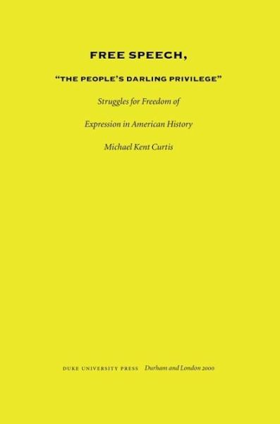 Modern ideas about the protection of free speech in the United States did not originate in twentieth-century Supreme Court cases, as many have thought. Free Speech, "The People's Darling Privilege" refutes this misconception by examining popular struggles for free speech that stretch back through American history. Michael Kent Curtis focuses on struggles in which ordinary and extraordinary people, men and women, black and white, demanded and fought for freedom of speech during the period from 1791-when the Bill of Rights and its First Amendment bound only the federal government to protect free expression-to 1868, when the Fourteenth Amendment sought to extend this mandate to the states. A review chapter is also included to bring the story up to date. Curtis analyzes three crucial political struggles: the controversy that surrounded the 1798 Sedition Act, which raised the question of whether criticism of elected officials would be protected speech; the battle against slavery, which raised the question of whether Americans would be free to criticize a great moral, social, and political evil; and the controversy over anti-war speech during the Civil War. Many speech issues raised by these controversies were ultimately decided outside the judicial arena-in Congress, in state legislatures, and, perhaps most importantly, in public discussion and debate. Curtis maintains that modern proposals for changing free speech doctrine can usefully be examined in the light of this often ignored history. This broader history shows the crucial effect that politicians, activists, ordinary citizens-and later the courts-have had on the American understanding of free speech. Filling a gap in legal history, this enlightening, richly researched historical investigation will be valuable for students and scholars of law, U.S. history, and political science, as well as for general readers interested in civil liberties and free speech.