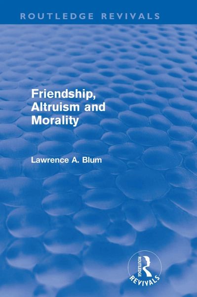 Friendship, Altruism, and Morality, originally published in 1980, gives an account of "altruistic emotions" (compassion, sympathy, concern) and friendship that brings out their moral value. Blum argues that moral theories centered on rationality, universal principle, obligation, and impersonality cannot capture this moral importance. This was one of the first books in contemporary moral philosophy to emphasize the moral significance of emotions, to deal with friendship as a moral phenomenon, and to challenge the rationalism of standard interpretations of Kant, although Blum's "sentimentalism" owes more to Schopenhauer than to Hume. It was a forerunner to care ethics, and feminist ethics more generally; to virtue ethics; and to subsequent influential interpretations of Kant that attempted to room for altruistic emotion and friendship, and other forms of particularism and partialism. In addition, the work has been widely influential in religious studies, political theory, bioethics, and feminist ethics.