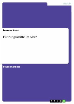 Studienarbeit aus dem Jahr 2011 im Fachbereich Gesundheit - Gerontologie, Note: 1,0, Universität Vechta; früher Hochschule Vechta (Institut für Gerontologie (IfG)), Veranstaltung: Lebensformen und Lebensführung; Persönlichkeit und Entwicklung , Sprache: Deutsch, Abstract: Nachstehend wird das Referat Führungskräfte im Alter schriftlich zusammengefasst. Dabei werden neben der Darstellung von Zahlen, Daten und Fakten im Hauptteil ein wissenschaftlicher Blick auf die Planung in den Ruhestand, den Eintritt in den Ruhestand sowie eine Betrachtung vom Erleben des Ruhestandes erfolgen. Hierbei versucht die Autorin einen besonderen Fokus auf die Studienergebnisse zu legen, die ehemalige Führungskräfte darstellt. Das Phasenmodell von Atchley wird an dieser Stelle etwas detaillierter beschrieben. Abschließend folgt ein kurzes Fazit, welches zeitgleich einen Ausblick beinhaltet.