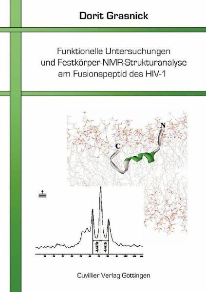 Im Rahmen dieser Arbeit sollte aus den Ergebnissen von verschiedenen Festkörper-NMR-Messungen ein Strukturmodell des FP23 in der Membran der Zielzelle erstellt werden und daraus resultierende Hinweise für den Fusionsmechanismus abgeleitet werden. Hierfür wurden der Wildtyp, sowie mehrere – mit unnatürlichen Aminosäuren als NMR-Sonden – an geeigneter Position markierte Varianten des Fusionspeptids (FP23) des Proteins gp41 aus HIV-1 mit 23 Aminosäureresten mittels Festphasenpeptidsynthese in ausreichender Menge und Reinheit hergestellt. Diese wurden mittels RP-HPLC charakterisiert und aufgereinigt, sowie die bei der Synthese erhaltenen Peptidepimere voneinander getrennt. Die absolute Konfiguration der Peptidepimere wurde mittels stereospezifischer enzymatischer Umsetzung des razemischen 4-CF3-Phenylglycins, saurer Hydrolyse der Peptidepimere und anschließender Derivatisierung mit Marfeys Reagenz erstmals eindeutig bestimmt. Die strukturellen Eigenschaften der Peptide in Lösung wurden mittels CDSpektroskopie untersucht. Eine Störung der Peptidstruktur durch den Einbau von 4-CF3-Phg wurde nicht nachgewiesen. Die fusogene Aktivität der Peptide wurde mittels eines Lipid-Mixing-Assays an Lipidvesikeln, basierend auf Fluoreszenz- Resonanz-Energie-Transfer, überprüft. Mit Hilfe einer alternativen Methode, der dynamischen Lichtstreuung, wurde die fusogene Aktivität der Peptide bestätigt. Eingehende strukturelle Untersuchungen der Peptide in orientierten Lipidbilayern, welche die Zellmembran der Viruszielzelle imitieren, wurden mittels 31P-, 2H- und 19F-Festkörper-NMR-Messungen in orientierten Membranen durchgeführt. Mit den hierbei gewonnenen Informationen wurde mit zwei verschiedenen Methoden eine Analyse der Sekundärstruktur des FP23 in Lipidbilayern durchgeführt. Daraus wurde ein Strukturmodell des FP23 in einer Lipiddoppelschicht erstellt.