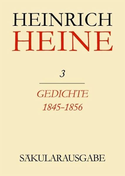 Für die Heine-Säkularausgabe musste eine Entscheidung bezüglich der chronologischen Anordnung getroffen werden. Gewählt wurde eine Anordnung, die zusammengehörige Werkkomplexe, zum Beispiel die Prosateile der "Reisebilder" oder die "Lutezia", als selbständige Bandeinheiten begreift. Ähnlich wie Heine selbst in der Ausgabe seiner französischsprachigen Werke bestimmte, werden in der Säkularausgabe gleichzeitig entstandene Texte nach inhaltlicher Übereinstimmung zusammengefast, so das sich eine leicht zu überschauende Anordnung des Gesamtwerkes ergibt. Band 3 enthält die Gedichte 1845 bis 1856