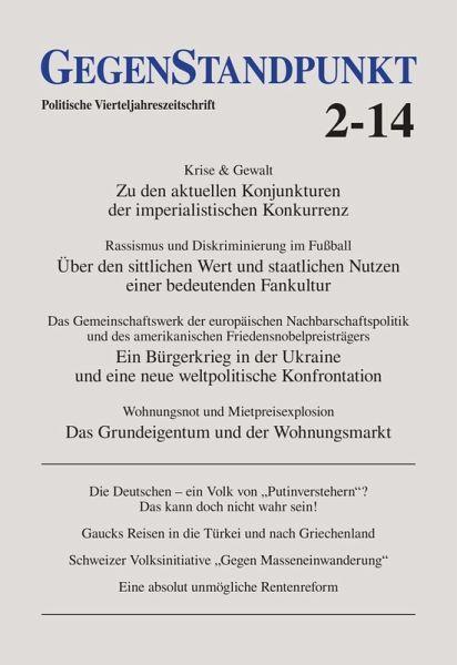 Wohnungsnot und Mietpreisexplosion: Das Grundeigentum und der Wohnungsmarkt In deutschen Großstädten ist eine neue Wohnungsnot ausgebrochen. Dass die elementare Lebensbedingung für die arbeitende Bevölkerungsmehrheit ein Luxus ist, den sie sich kaum leisten kann, wird hochoffiziell als "soziales Problem" anerkannt. Politiker versprechen unentwegt, sich dafür einzusetzen, dass "das Wohnen bezahlbar bleibt" - was schon alles sagt: Nach 150 Jahren kapitalistischen Wachstums ist es das für viele eben nicht. * Das Gemeinschaftswerk der europäischen Nachbarschaftspolitik und des amerikanischen Friedensnobelpreisträgers: Ein Bürgerkrieg in der Ukraine und eine neue weltpolitische Konfrontation Am Anfang hat nur eine Unterschrift gefehlt unter einem Vertrag, von dem die Europäer behaupten, dass er für alle Seiten nur das Beste gewollt hat. Jetzt zerlegt sich die Ukraine in einem Bürgerkrieg. Und NATO und Russland lassen Truppen aufmarschieren. Die Öffentlichkeit überholt die Politik bei weitem mit ihren Imperativen, was "wir" an russischem Benehmen keinesfalls dulden können. Andererseits fragt sich dieselbe Öffentlichkeit mit Sorge, wieso nur das Unmögliche auf einmal wieder möglich erscheint, dass mitten in Europa, nachdem die Europäer dort angeblich in den letzten 59 Jahren ein einziges großes Friedenswerk zustande gebracht haben, ein Krieg ausbricht. Eine solche Lage bricht aber nicht einfach herein, sie wird hergestellt. Und das nicht einfach dadurch, dass ein ewiggestriger russischer Großmachtpolitiker seine Hand auf die zur Freiheit drängende Ukraine legen will und damit den ,Frieden' bricht. Diesem Bild Putins und seiner unentwegt angeprangerten Verbrechen ist eher umgekehrt der europäisch-amerikanische Anspruch und das Programm zu entnehmen, welches die Ukraine zum Fall für westlichen ,Schutz des ukrainischen Volkswillens' gegen russische Aggression macht - eines Volks das als solches, im Nationalismus geeintes Volk gar nicht existiert und mit seinen Bedürfnissen ohnehin nicht zählt. Zum selben Thema eine ausführliche Würdigung der hiesigen demokratischen Öffentlichkeit und ihrer abgrundtiefen Unzufriedenheit über die mangelnde nationalistische Parteilichkeit ihres Publikums: Die Deutschen - ein Volk von ,Putinverstehern'? Das kann doch nicht wahr sein! * Dem Nationalismus und seiner ganz freien Betätigung auf einem anderen Feld widmet sich der Artikel: "Euer Hass ist unser Stolz!" - Rassismus und Diskriminierung im Fußball: Über den sittlichen Wert und staatlichen Nutzen einer bedeutenden Fankultur * Krise & Gewalt - Zu den aktuellen Konjunkturen der imperialistischen Konkurrenz Das haben die Weltwirtschaftsmächte USA und EU geschafft: Mit der hoheitlichen Schöpfung und Vergabe von Kredit in nicht begrenzter Menge haben sie die Entwertung von Bankschulden wie von Verbindlichkeiten der eigenen Staatshaushalte gestoppt, ihre Zahlungsfähigkeit und die ihrer Geschäftswelt gerettet und das Finanzgewerbe zur Wiederaufnahme seiner spekulativen Leistungen ermächtigt. So finanzieren die kapitalistischen Weltmächte per Dekret das Funktionieren des Weltkapitalismus. Sie ringen um nationales Wachstum und mehr Anteil an einem krisenhaften Weltgeschäft. Für die konkurrierenden Führungsmächte des globalisierten Kapitalismus, für die USA und für Deutschland als Zentrum der Euro-Zone steht dabei je auf ihre Art, als Quintessenz ihrer Krisenpolitik der "Schluss" von der Not, die fehlende kapitalistische Tauglichkeit ihres Kreditgelds ökonomisch zu überwinden, auf die Notwendigkeit, Hindernisse wegzuräumen. Dazu das Neueste von der deutsch-amerikanischen Freundschaft.