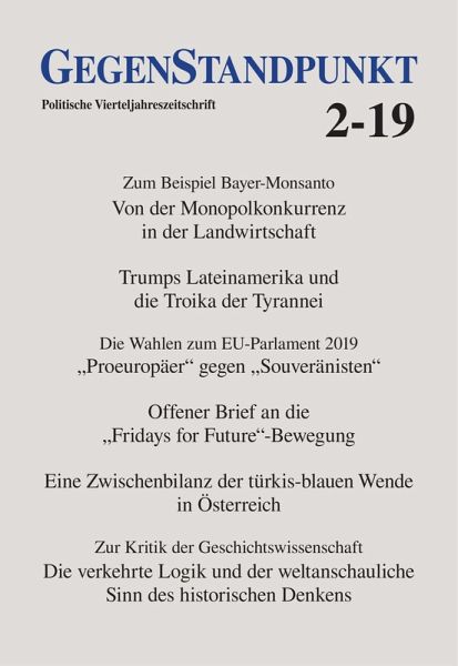 Anfangs herrscht die Sorge, Bayer könnte seinen guten Ruf ruinieren. Doch nach dem erfolgreichen Abschluss der Fusion mit Monsanto kommt Freude über die ¿größte Übernahme der deutschen Wirtschaftsgeschichte¿ auf, über den ¿perfekten Deal¿, mit dem ¿Bayer den Namen Monsanto verschwinden lässt¿ und zum größten Agrarchemiekonzern der Welt aufsteigt. Nachdem dann mehrere Gerichte in den USA Monsantos Verkaufsschlager Glyphosat bescheinigen, Krebs auszulösen, der Klage eines betroffenen Hausmeisters auf eine millionenschwere Entschädigung Recht geben und damit den Kurs der Bayer-Aktie auf Talfahrt schicken, kehren die Bedenken in schärferer Form zurück. Die Anteilnahme, mit der die Profis der deutschen Öffentlichkeit das Treiben ihrer lokalen Global Players begleiten, ist rührend. Dabei wird vor lauter Sorge um den Erfolg der Transaktion deren großartiges Ziel gar nicht gewürdigt, obwohl die Chefs die allerbesten Motive haben und die Zukunft der Landwirtschaft gestalten wollen. In Österreich ist die Regierungskoalition aus ÖVP mit dem neuen Kanzler Sebastian Kurz und der FPÖ angetreten, das Land zu reformieren. Sie pflegt den Stil des ¿Durchregierens¿, reformiert das ¿Armenwesen¿, die Krankenkassen und das Arbeitsrecht; sie kämpft gegen die ¿Invasion Illegaler¿ und führt einen Kulturkampf gegen den ¿politischen Islam¿. Es hätte, wenn nicht ewig, so doch bis zum Ende der Legislaturperiode so weitergehen können. Auf diesen Zeitraum waren auch die Vorhaben der Koalition abgestellt, wie die Steuerreform. Dann stellt sich heraus, dass die so ¿professionell¿ gemanagte Öffentlichkeitsarbeit (¿message control¿) der Regierung vor zwei Jahren auf Ibiza, mithin vor dem Amtsantritt, brutal versagt hatte. Die Regierung der USA verkündet am US-Feiertag der Völker Panamerikas die aktuell geltende Fassung des in Washington herrschenden Verständnisses von ¿unserer Hemisphäre¿ vulgo ¿Hinterhof der USA¿. Im Rahmen ihrer gemeinsamen Mission für den Fortschritt der Freiheit auf dem Doppelkontinent sind nach Auffassung der Vormacht die Aufgaben zwischen den Völkern Amerikas eigentlich klar verteilt: Die im Süden sollen einfach ihre Armut, ihre Drogen und all das Verbrechen, das damit verbunden ist und sich an den USA mit Milliarden Dollars vollsaugt, bei sich behalten. Vor allem sollen sie ihre elenden Massen nicht einfach migrieren lassen, wohin sie wollen. Bei ihrer Wanderung aus dem Elend des Südens zu den Arbeitsmärkten des Nordens schleppen sie alle denkbaren Übel in die USA ein und verbreiten nichts als Probleme und Unsicherheit. Im Gegenzug ist auch die Führungsnation des Weltkapitalismus bereit, das Ihre zum Zusammenleben aller Amerikaner beizutragen: Sie radikalisiert unter dem Kommando eines eigenen neuen ¿Immigrationszaren¿ nach Kräften das Grenzregime, wirft möglichst viele Illegale aus dem Land, sorgt für ein neues Einwanderungsrecht für die besten Köpfe auch aus Lateinamerika und stärkt mit der Androhung von Strafzöllen für Einfuhren aus Mexiko den Willen des südlichen Nachbarn, ¿die illegale Migration über die gemeinsame Grenze in die USA zu stoppen¿. Ansonsten melden sich die Amis rechtzeitig bei den Zuständigen, wenn es in Sachen ¿trade and investment¿ jenseits der Südgrenze etwas zu dealen gibt. Was Kuba, Venezuela und Nicaragua im speziellen betrifft, proklamiert Trump die Pflicht, die Völker der drei Tyrannen-Staaten ¿weiterhin in ihrem Kampf für die Wiederherstellung von Demokratie und Freiheit zu unterstützen¿.