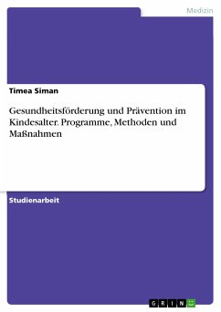 Studienarbeit aus dem Jahr 2022 im Fachbereich Gesundheit - Kinder und Jugendliche, (IU Internationale Hochschule) (IU International University of Applied Sciences - Campus München), Sprache: Deutsch, Abstract: Die Hausarbeit befasst sich mit dem Thema der Gesundheitsförderung und Prävention im Kindesalter. Sie beschreibt die Notwendigkeit eines gesunden Aufwachsens eines Kindes und welche Vorkehrungen getroffen werden müssen, um einem Kind eine gesunde Lebenseinstellung auf den Weg geben zu können. Die gesundheitliche Situation von Kindern ist in Deutschland ein wichtiges und…mehr