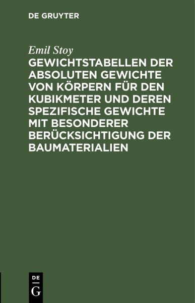 Keine ausführliche Beschreibung für "Gewichtstabellen der absoluten Gewichte von Körpern für den Kubikmeter und deren spezifische Gewichte mit besonderer Berücksichtigung der Baumaterialien" verfügbar.