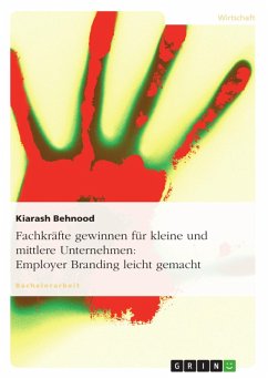 Bachelorarbeit aus dem Jahr 2012 im Fachbereich Führung und Personal - Employer Branding, Note: 1,0, Universität Hamburg, Sprache: Deutsch, Abstract: Kleine und mittlere Unternehmen (KMU) bilden allein aufgrund ihrer hohen Anzahl das Rückgrat der deutschen Wirtschaft und sind auf Basis ihrer Struktur besonders von qualifizierten Fachkräften abhängig. Vor dem Hintergrund eines drohenden Fachkräftemangels hat das Konzept des Employer Brandings in der Personalgewinnung und -bindung zunehmend an Bedeutung gewonnen. Kleine und mittlere Unternehmen sind sich der Wichtigkeit einer attraktiven Arbeitgebermarke bewusst, wenden jedoch nur vereinzelt Personalmarketingmaßnahmen an. Davon ausgehend ist das Ziel der vorliegenden Arbeit, die Bedeutsamkeit und die Durchführbarkeit des Employer Brandings für kleine und mittlere Unternehmen aufzuzeigen. Auf Basis der aktuellen Zahlen kann man noch nicht von einem flächendeckenden Fachkräftemangel sprechen. Da aber zwischen Konzeption, Implementation und nachhaltiger Wirkung personalpolitischer Maßnahmen Jahre vergehen, ist das Thema bereits jetzt von zentralem Interesse. Es wird herausgearbeitet welche Erfolgsfaktoren, Risiken und Chancen mit einer Employer Branding Strategie für kleine und mittlere Unternehmen verbunden sind. Dabei zeigt sich die herausragende Bedeutung der Glaubwürdigkeit als ein maßgeblicher Erfolgs- und Risikofaktor für eine Employer Branding Strategie. Die größte Chance für kleine und mittlere Unternehmen ist es die eigene Unternehmenskultur auszubauen. In dieser Arbeit wird darüber hinaus die tragende Rolle des internen Employer Brandings im Rahmen der Rekrutierung neuer Mitarbeiter deutlich.