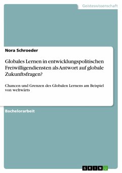 Bachelorarbeit aus dem Jahr 2016 im Fachbereich Soziale Arbeit / Sozialarbeit, Note: 1,7, Evangelische Fachhochschule Freiburg, Sprache: Deutsch, Abstract: Die öffentliche Meinung über das entwicklungspolitische Freiwilligenprogramm weltwärts ist geteilt: Kritiker_innen betonen, das Programm sei für die jungen Menschen lediglich eine Möglichkeit, ihre Karriere voranzubringen, und Ausdruck des Wunsches nach einem besonders ereignisreichen Leben. Nach Einführung des Freiwilligendienstes (FWD) weltwärts wurde unter Schlagzeilen wie "Egotrips ins Elend" über den Dienst berichtet. Außerdem bedeute die Zunahme der Entsendungen innerhalb von drei Jahren (der Einführungsphase des Programms) auf 10.000 Freiwillige pro Jahr mitunter eine Überforderung für die aufnehmenden Partnerorganisationen. Festzuhalten bleibt an dieser Stelle jedoch: Die Beliebtheit des weltwärts-Freiwilligendienstes (angesichts der großen Anzahl an Entsendungen ist davon auszugehen, dass der Dienst sich eines großen Zulaufs erfreut) impliziert auch eine gewisse gesellschaftliche Relevanz. Diese Arbeit soll aber keine pauschale Antwort geben, ob entwicklungspolitische Freiwilligendienste wie das weltwärts-Programm als gut oder schlecht zu betrachten sind. Vielmehr wird der Blick darauf gerichtet, worin diese "Saat" besteht.