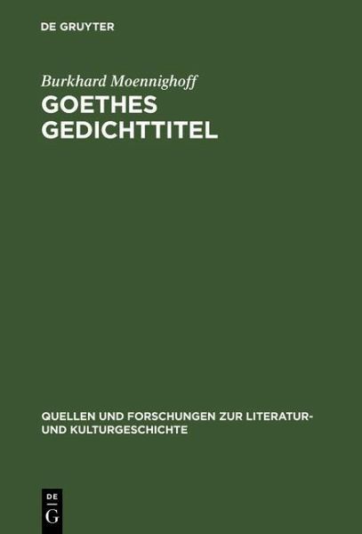 Burkhard Moennighoff sichtet Goethes Gedichttitel nach Maßgabe von Voraussetzungen, die in einem gemischt deduktiv-induktiven Vorgehen gewonnen werden. Die Beschreibung von Goethes Titelkunst orientiert sich am Leitfaden der Entwicklungsgeschichte seiner Lyrik (unter Berücksichtigung der Goethischen Gedichtsammlungen), beginnend mit den Gedichten des Knaben und endend mit den Alterslyrica. Es wird dabei gezeigt, daß sich die geschriebene Lyrik Goethes sowohl an ein lesendes als auch an ein hörendes Publikum richtet.