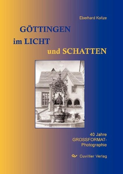 Ca. 190 Photographien aus 40 Jahren künstlerischer Arbeit hat der Göttinger Photograph Eberhard Koltze in diesem beeindruckenden Bildband zusammengestellt und mit begleitenden Texten versehen. Der thematische Schwerpunkt der Architektur- und Landschaftsaufnahmen gliedert sich in verschiedene Rubriken wie „Kirche und Friedhöfe“, „Mühlen“, „Warten“, „Am Wall und Fachwerk“, „Burge und Türme“, „Abriß und Bauerei“, „Gebäude und Plätze“, „Alt und Neu“ etc., in denen ein Panorama der Stadt Göttingen und ihrer Landschaft entworfen wird, das es so noch nicht gegeben hat.