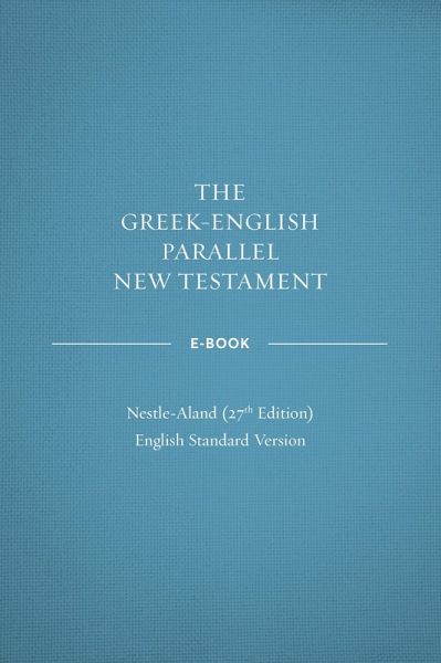 The Greek-English Parallel New Testament features the Nestle-Aland Novum Testamentum Graece text and the English Standard Version New Testament. Each verse in the Greek text appears above the same verse in the ESV translation. A two-level, interactive Table of Contents and improved navigation make it easy to move between passages. The Greek-English Parallel New Testament is the first Greek-English parallel ebook to contain both the Nestle-Aland Greek Text (27th revised edition) as well as a major, copyrighted English translation. It's a quality reference tool for pastors, scholars, and students who regularly work with the Greek New Testament. Available on all major ebook platforms.