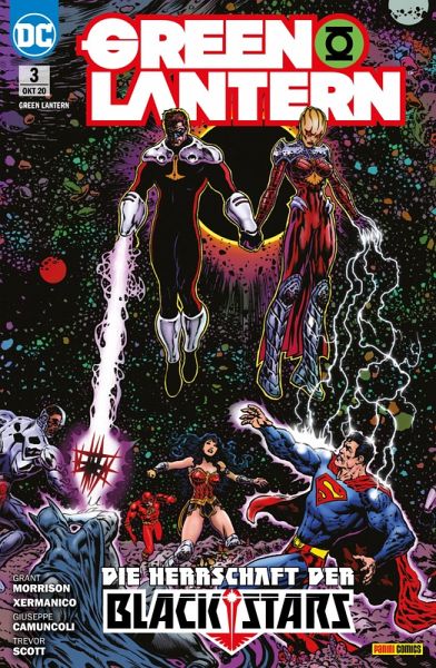 DIE DÜSTERE SCHUTZMACHT DES UNIVERSUMS! Hal Jordan weiß nichts mehr von seinen Heldentaten als Green Lantern! Er, Jessica Cruz und die Weltraum-Vampirin Belzebeth dienen jetzt den Blackstars, der totalitären, gefürchteten und absolut unangefochtenen Schutzmacht im Universum. Mit eiserner Faust sorgen sie für Recht und Ordnung im Kosmos. Doch als die Erde bei der bevorstehenden Vermählung von Hal Jordan mit der planetenfressenden Belzebeth zu deren Festmahl werden soll, regt sich etwas in Hal ... die Erinnerung an ein anderes Universum und an eine intergalaktische Organisation namens ... Green Lantern Corps?! Plus: die elektrisierende Rückkehr von Air Wave! Die komplette Miniserie GREEN LANTERN: BLACKSTARS von Meisterautor Grant Morrison (ALL-STAR SUPERMAN), mit Zeichnungen von Xermanico (INJUSTICE: GÖTTER UNTER UNS) und Giuseppe Camuncoli (HELLBLAZER)! Komplette US-Miniserie in einem Band!
