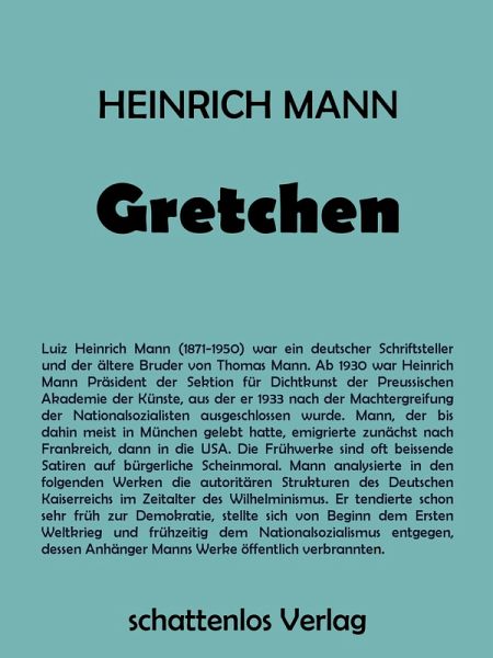 Luiz Heinrich Mann (1871-1950) war ein deutscher Schriftsteller und der ältere Bruder von Thomas Mann. Ab 1930 war Heinrich Mann Präsident der Sektion für Dichtkunst der Preussischen Akademie der Künste, aus der er 1933 nach der Machtergreifung der Nationalsozialisten ausgeschlossen wurde. Mann, der bis dahin meist in München gelebt hatte, emigrierte zunächst nach Frankreich, dann in die USA. Die Frühwerke sind oft beissende Satiren auf bürgerliche Scheinmoral. Mann analysierte in den folgenden Werken die autoritären Strukturen des Deutschen Kaiserreichs im Zeitalter des Wilhelminismus. Er tendierte schon sehr früh zur Demokratie, stellte sich von Beginn dem Ersten Weltkrieg und frühzeitig dem Nationalsozialismus entgegen, dessen Anhänger Manns Werke öffentlich verbrannten.